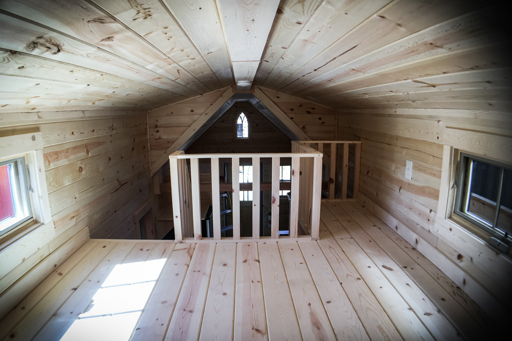 (Note: the photograph does not fully represent Ariana's model, as the ceiling in the porch-side loft area is higher and flatter in her version.)